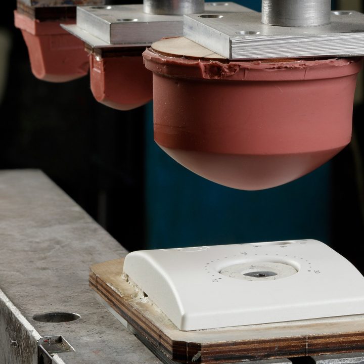 Il primo passaggio consiste nella preparazione del cliché, una lastra in acciaio rivestita da un fotopolimero. Una volta incisa la decorazione desiderata, il cliché viene posizionato nella macchina tampografica ed è pronto per ricevere l’inchiostro che verrà distribuito uniformemente, riempiendo le incisioni della decorazione.